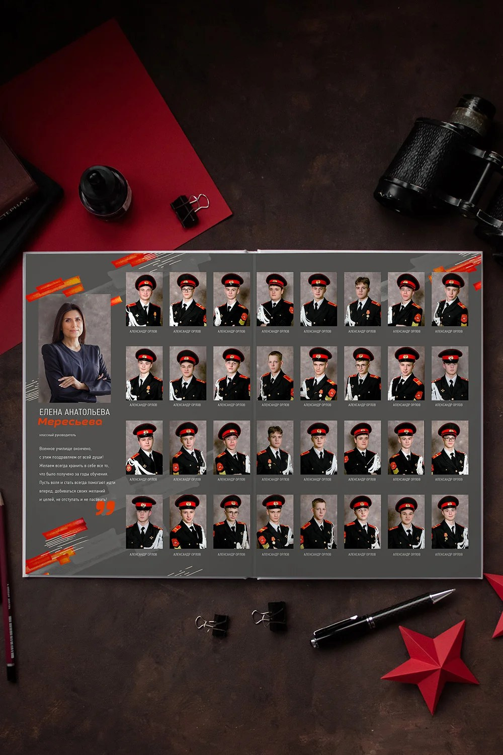 Общегрупповая фотография на полный разворот.